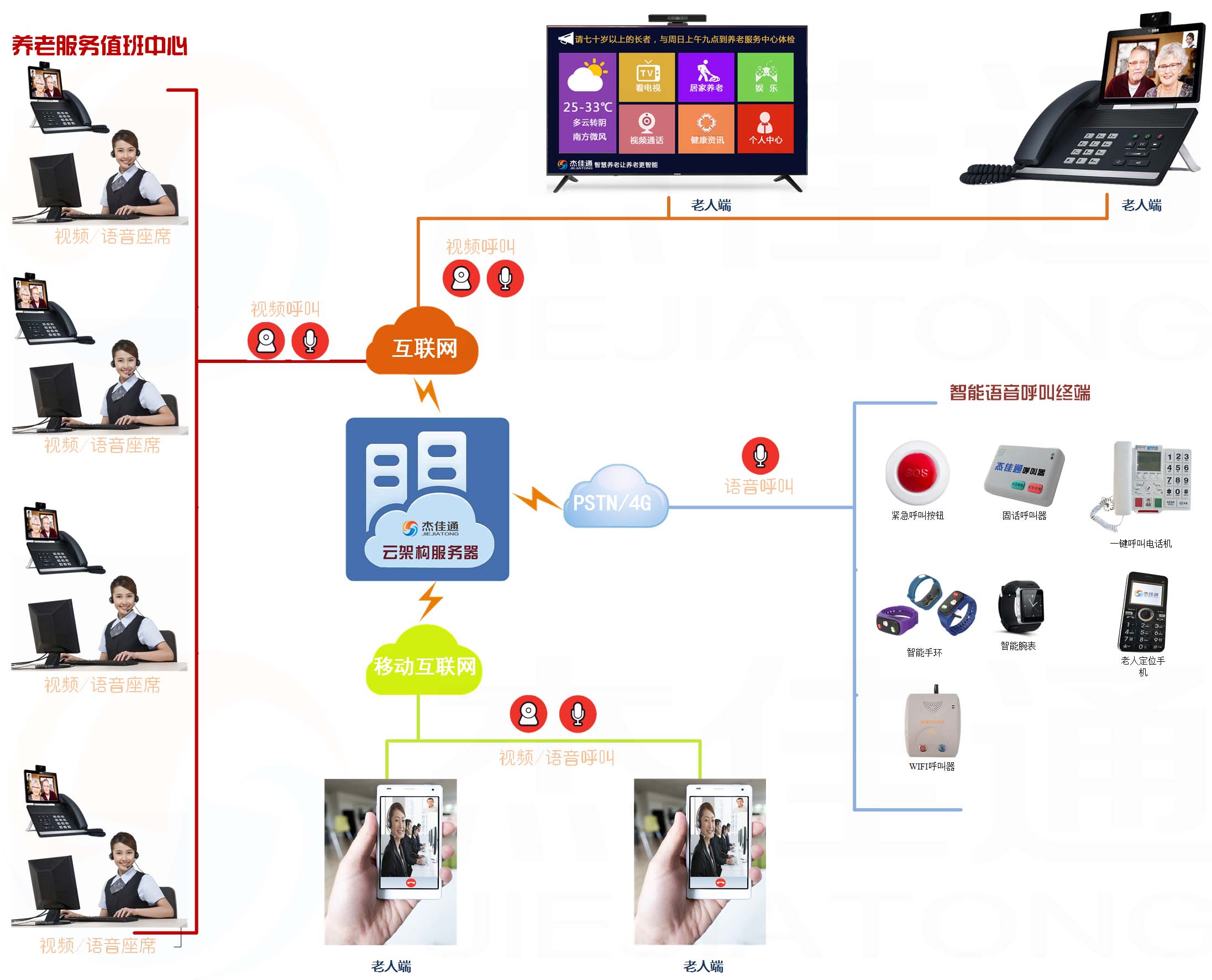 •         杰佳通自主研發(fā)的智慧養(yǎng)老平臺中把可視化功能完美應用于老人需求提交,看得見的養(yǎng)老服務--視頻應用在智慧養(yǎng)老平臺中得到充分體現(xiàn),老人可以通過“智能手機”、“電視”、“平板電腦”進行可視化(視頻)呼叫服務中心或者服務商和子女。