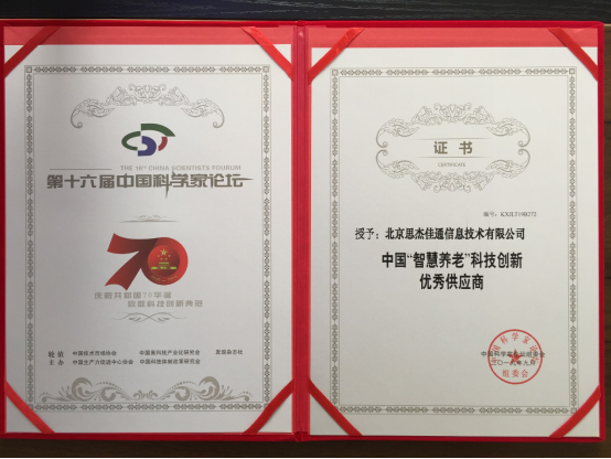 第十六屆的論壇主題為“慶祝新中國70周年華誕,致敬科技工作者,弘揚科學家精神,推進科技創新引領產業發展,實現新時代高質量發展”。杰佳通完美的契合了其對于高科技企業的發展,并且能夠助力時代發展,在引領智慧養老方面發揮了不可替代的作用。第十六屆中國科學家論壇授予公司領導人張其魯為中國“智慧養老”科技創新先鋒人物、北京思杰佳通信息技術有限公司為中國“智慧養老”科技創新優秀供應商。