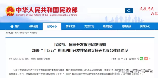 據民政部網站12月3日消息,民政部、國家開發銀行發布關于“十四五”期間利用開發性金融支持養老服務體系建設的通知。