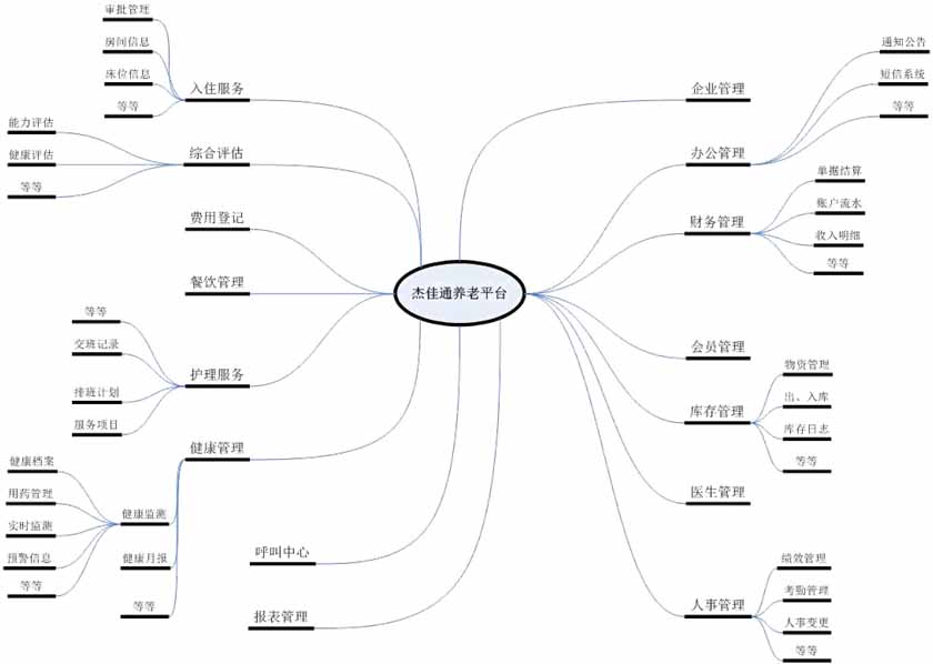 杰佳通機構養老智慧平臺是經過20年的完善,主要應用于:地產養老、醫養結合、養老院、敬老院、養老福利院、老年公寓、老年康復中心、酒店式養老寓等。功能包括--集人事管理、倉庫管理、老人管理、護理管理、費用管理、老人銀行、接待管理、變更記錄、統計查詢、健康監控、智能呼叫、基礎管理等綜合管理為一體的信息化管理平臺,有幾百個子模塊,涵蓋了機構養老的方方面面,可以本地化部署,可以云服務器部署。通過該系統,養老機構可將各職能部門、服務單元以及外部市場連成一個有機整體,進行快速、高效的信息收集和業務處理,為養老機構的管理和服務提供適時、準確、可靠的決策依據,提高經營管理效能,增強養老機構的核心競爭力。